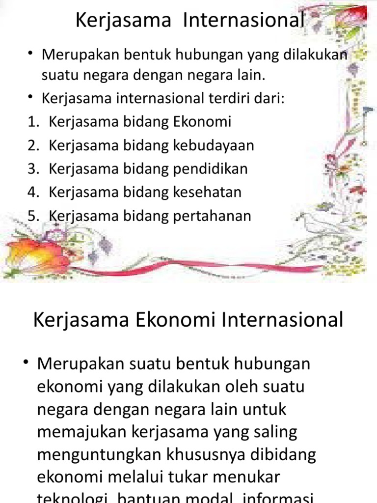 Pengertian, tujuan, fungsi, manfaat, asas, bentuk, dampak. Bentuk kerjasama ekonomi internasional di atas memang sangat diperlukan karena setiap negara sejatinya tetap membutuhkan hubungan timbal balik dengan negara lainnya. Secara singkat, kerjasama ekonomi yang berskala internasional ini ialah kerjasama yang berlangsung dalam bidang ekonomi, di mana kerjasama untuk bidang keuangan sendiri, contohnya ialah dalam bentuk pinjaman. 5 file download materi kerjasama ekonomi internasional.