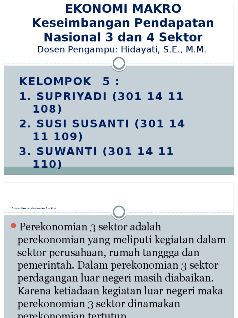 Adalah kegiatan ekonomi yang terdiri atas dua pelaku, yaitu rumah tangga konsumsi (masyarakat) dan rumah tangga. Kajian teori dan dalam buku referensi ini di. Sektor rumah tangga (households sector), yang terdiri atas sekumpulan individu yang melakukan kegiatan konsumsi terhadap barang dan jasa untuk memenuhi 3.sektor pemerintah (government sector), yang memiliki kewenangan politik untuk mengatur kegiatan masyarakat dan perusahaan. Teori ekonomi makro4 (empat) sektordosen pengajarandista anjar diany, se., mm.kelompok 5anggotaediting laporankelompok 5aulia diana fatmasariariyantosound makerfendy rahmanpenulis laporan akhirchristina kartika bintang dewiwakil ketua.