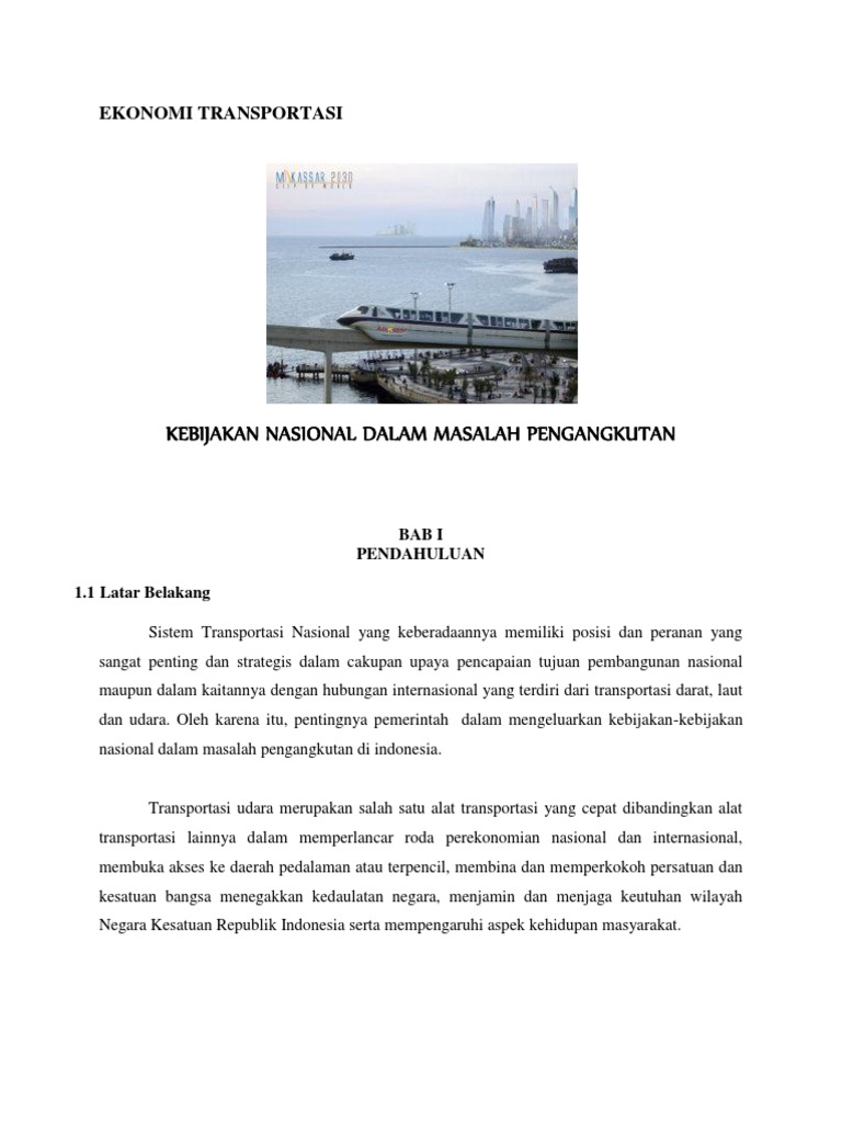 Sebagai negara kepulauan, transportasi laut memiliki peranan yang cukup penting untuk menjamin kelancaran mobilitas penduduk dan distribusi barang antar pulau di indonesia.