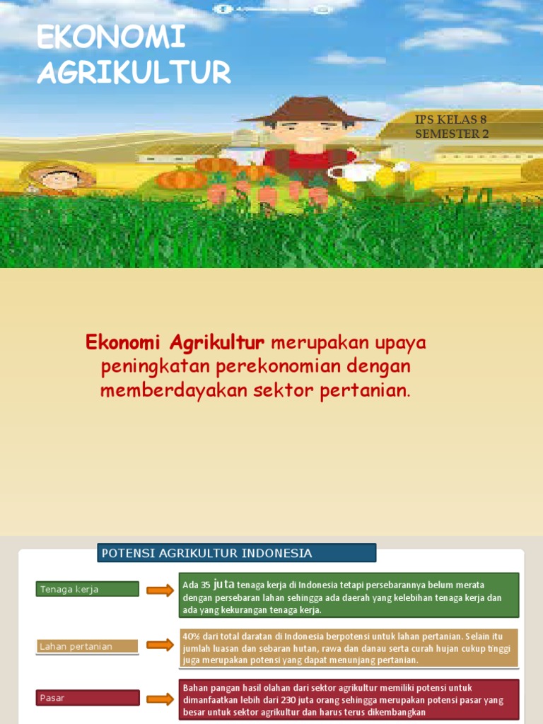 Get Ekonomi Agrikultur Adalah Images. Ekonomi agrikultur adalah upaya peningkatan perekonomian dengan memberdayakan sektor pertanian. Pengembangan agrikultur adalah kegiatan mengelola tumbuhan dan ternak agar dapat memberikan keuntungan ekonomi.