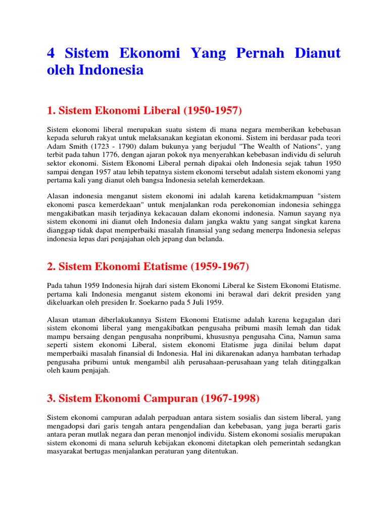 Sistem ekonomi pertama kalinya diterapkan di negara indonesia adalah sistem ekonomi liberal. Pencetus ide mengenai system ekonomi etatisme adalah karl max, sebagai ulah para kaum kapitalis. Perekonomian indonesia, pengertian, jenis, tujuan, fungsi dan menurut para ahli : Istilah ekonomi sendiri berasal dari bahasa yunani, yaitu οἶκος (oikos) yang berarti keluarga, rumah tangga dan νόμος (nomos).